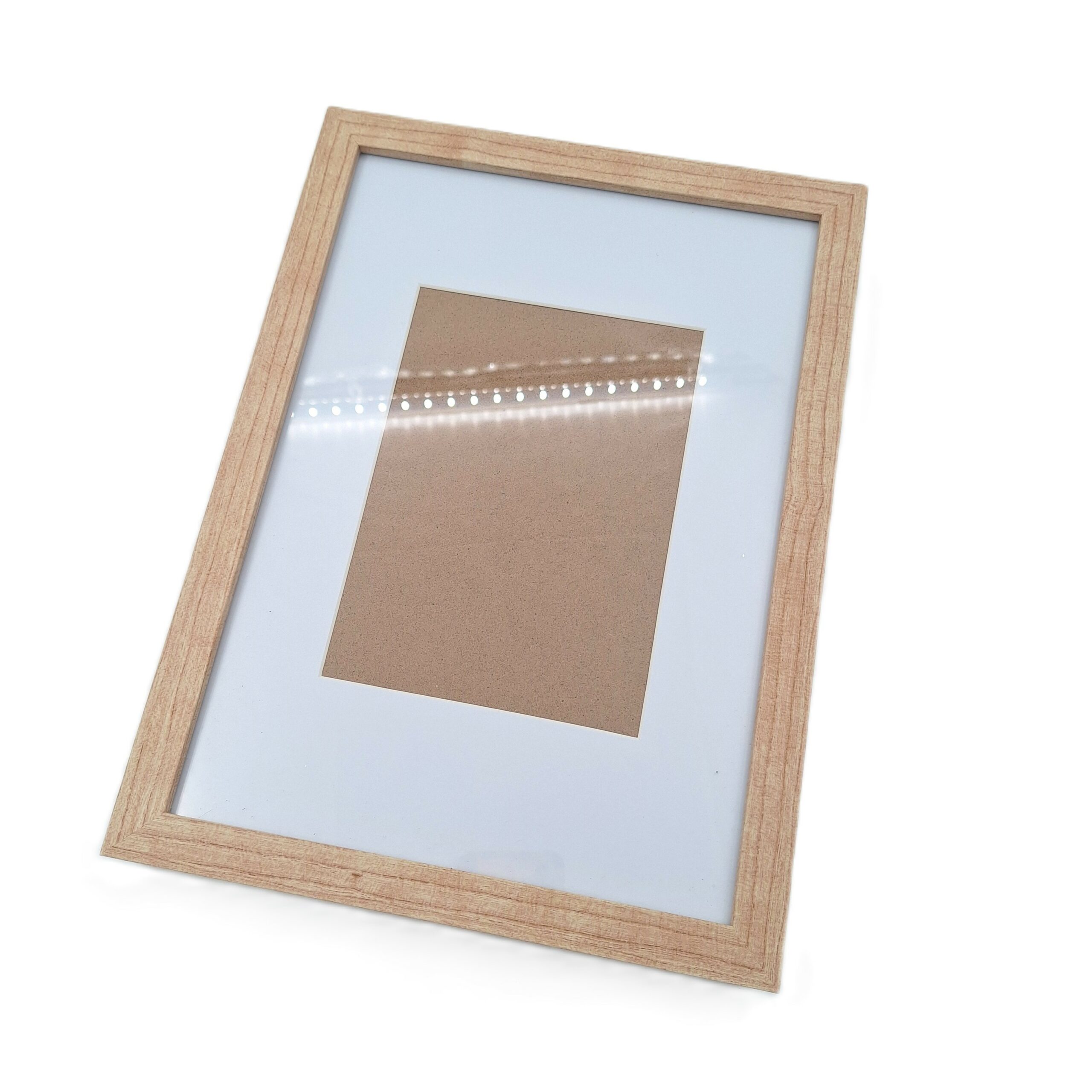 Joli cadre en bois parfait pour votre décoration. Avec le passe partout blanc, les dimensions de la photo sont de 12x17. Le contour blanc peut s'enlever pour accueillir une photo de format A4.