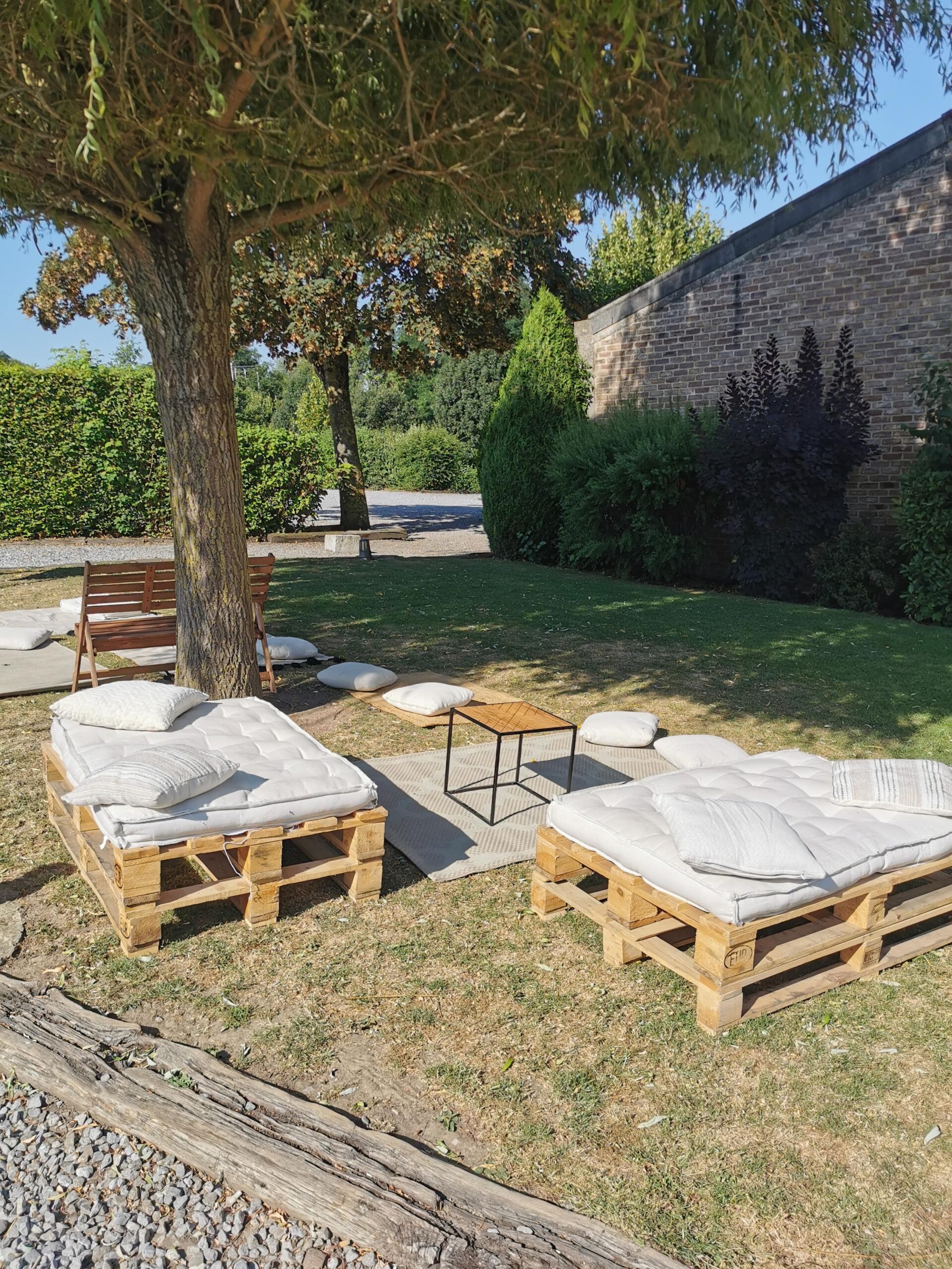 Coin lounge 2 poufs/palettes