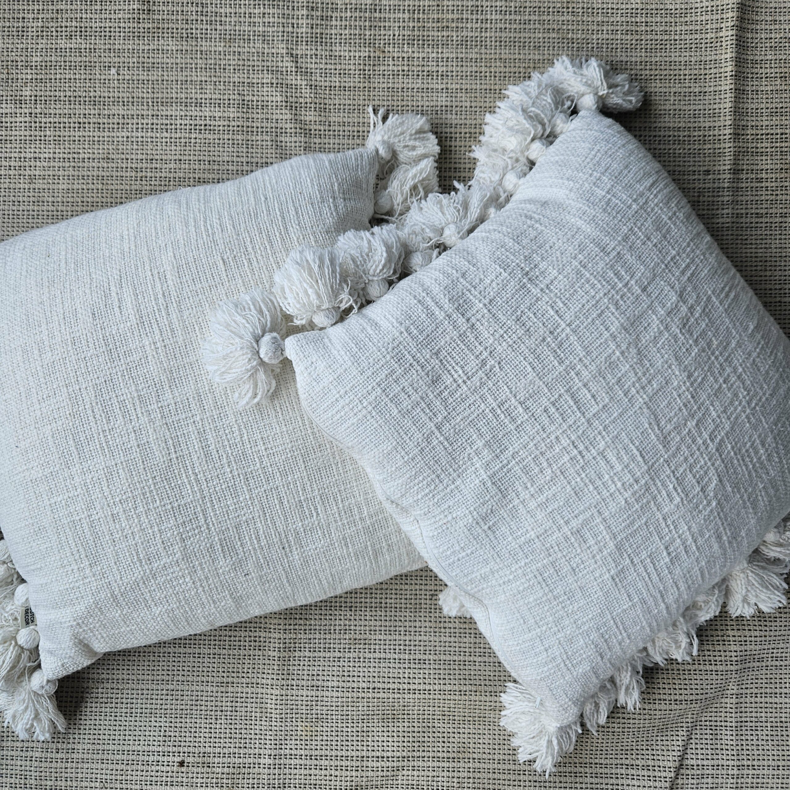 Joli coussin blanc à pompons