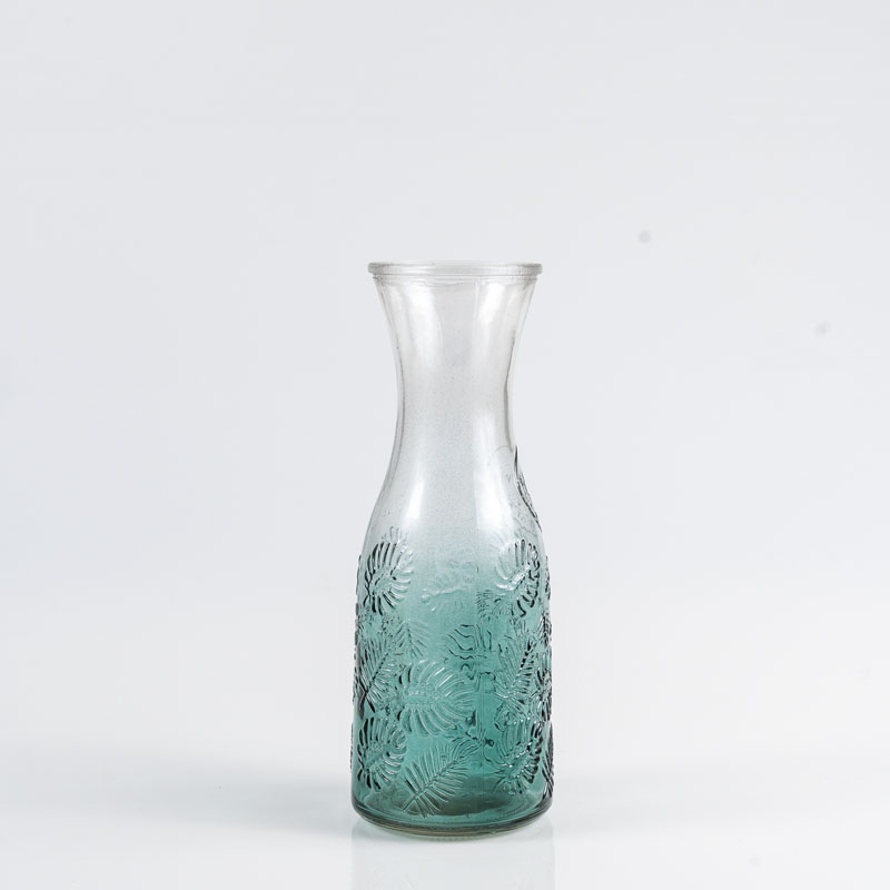 Cruche en verre motifs feuilles tropicales vertes