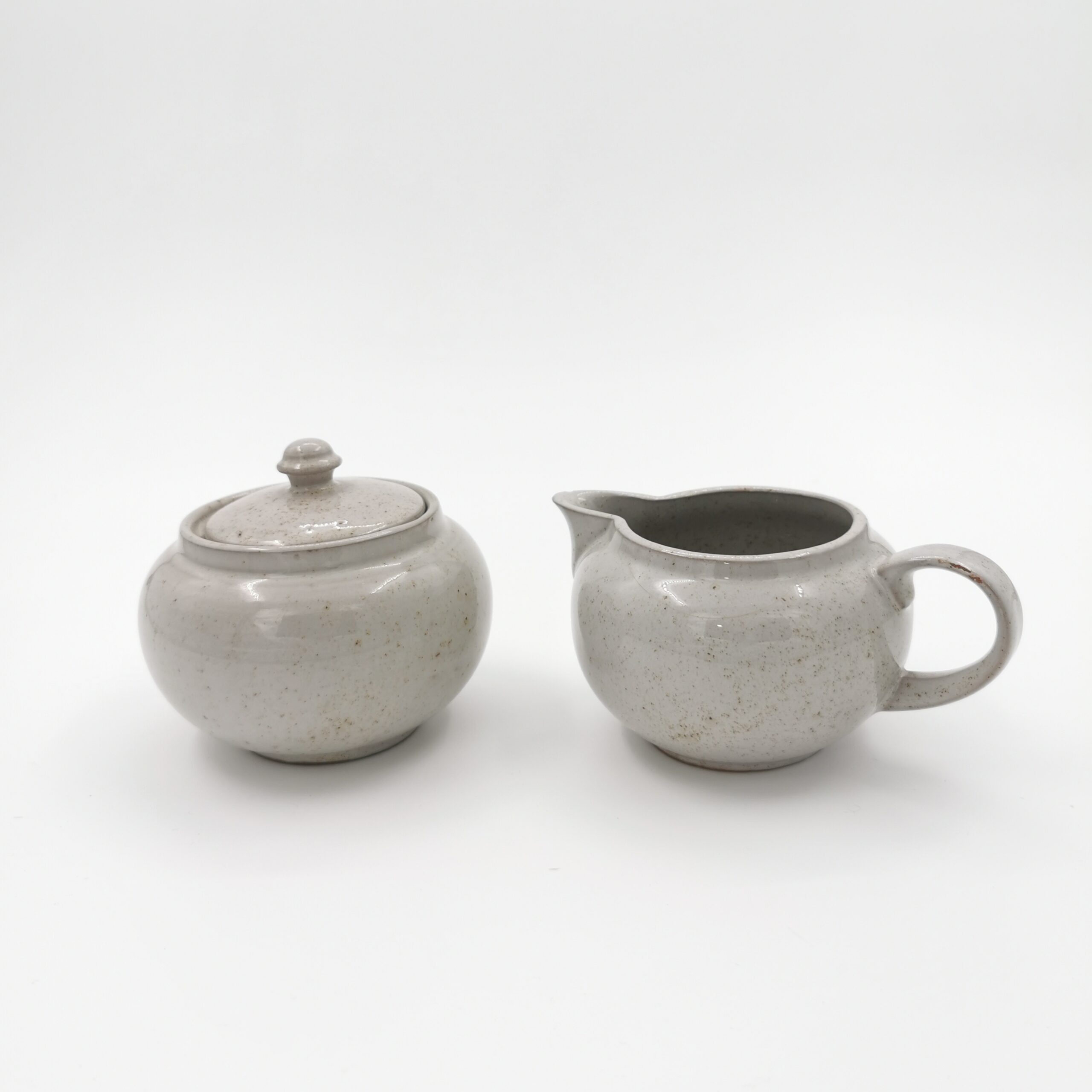 Duo de pot à lait et pot à sucre en terre cuite gris