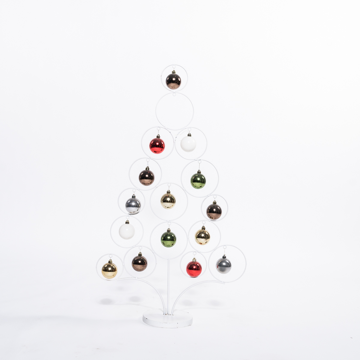 Structure en métal blanc en forme de sapin avec boules