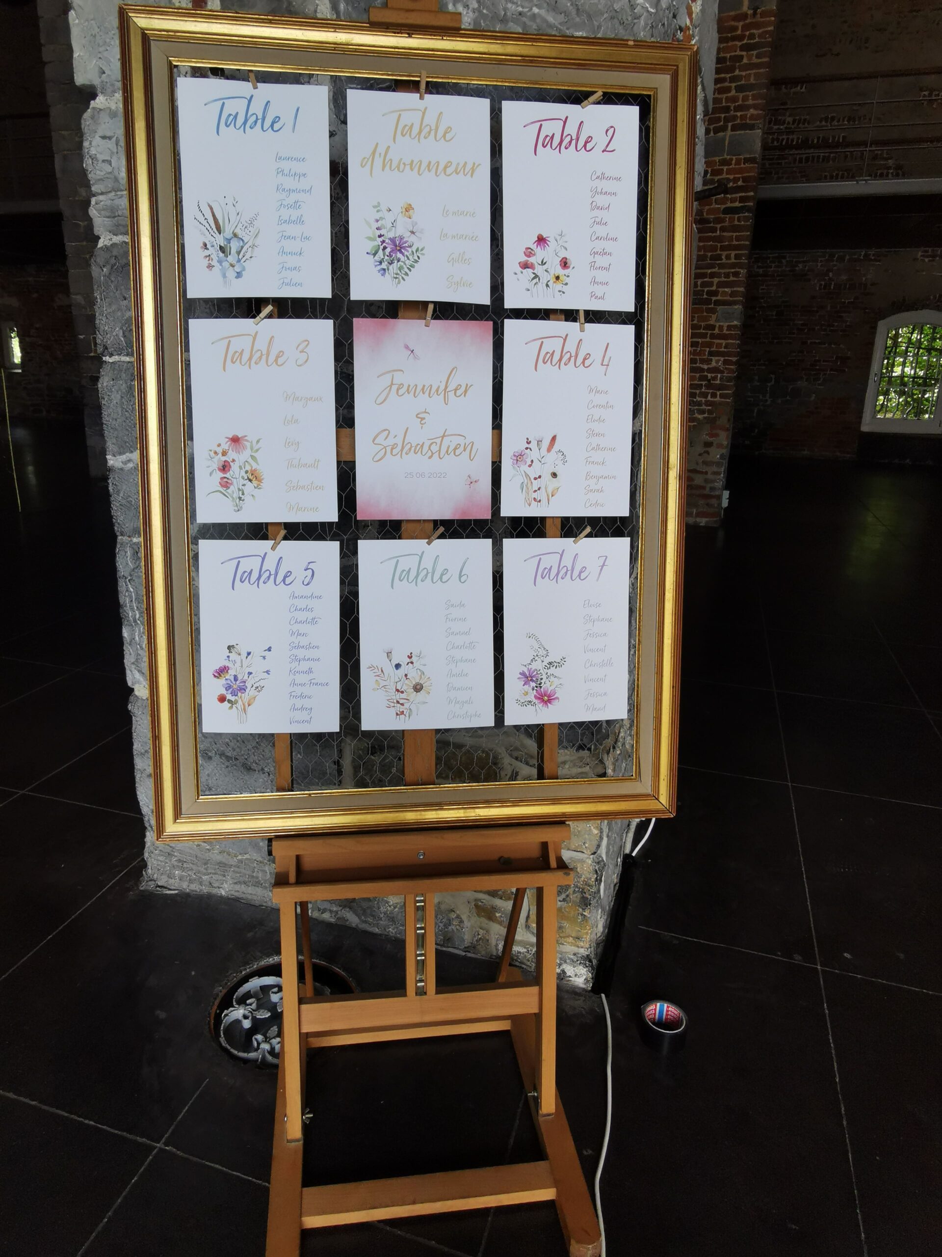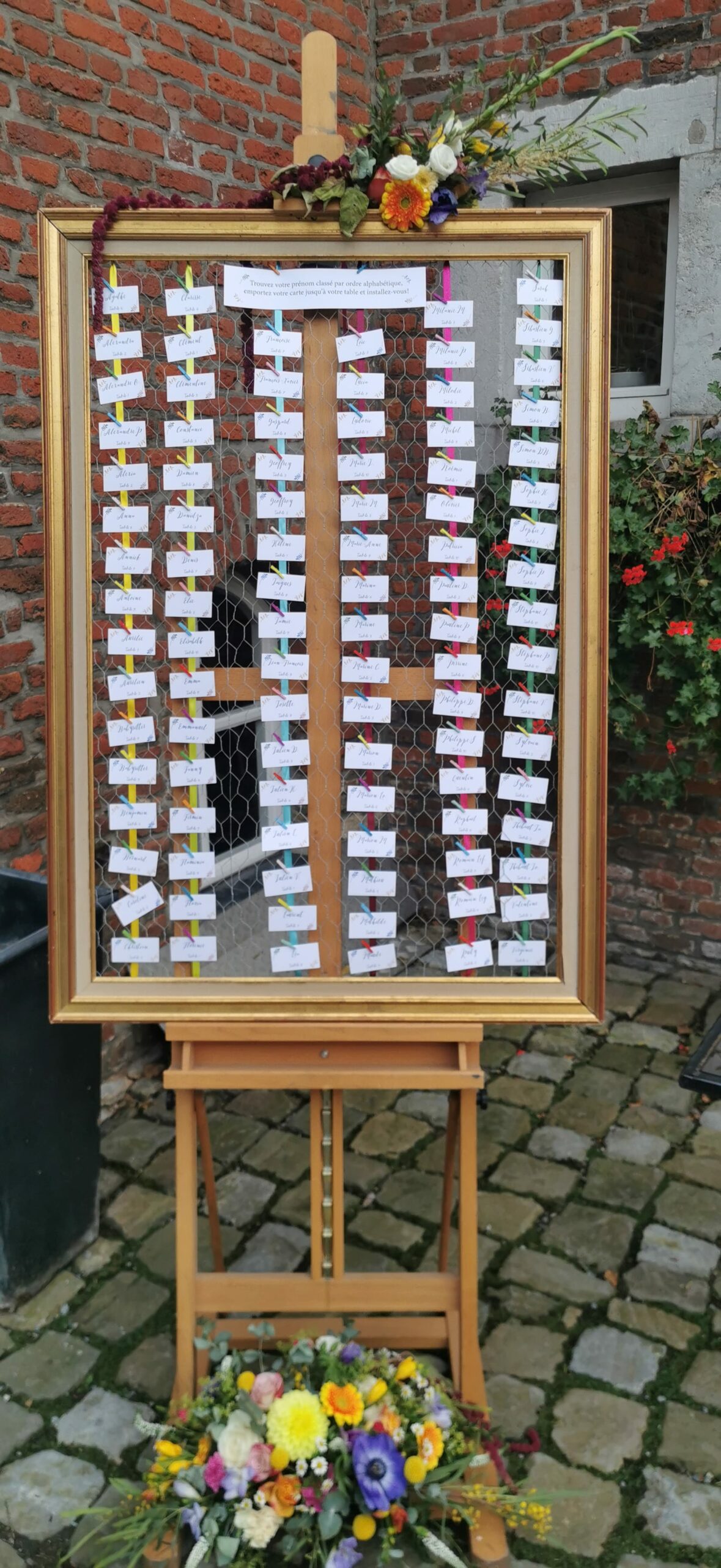 Grand cadre doré fond grillagé
