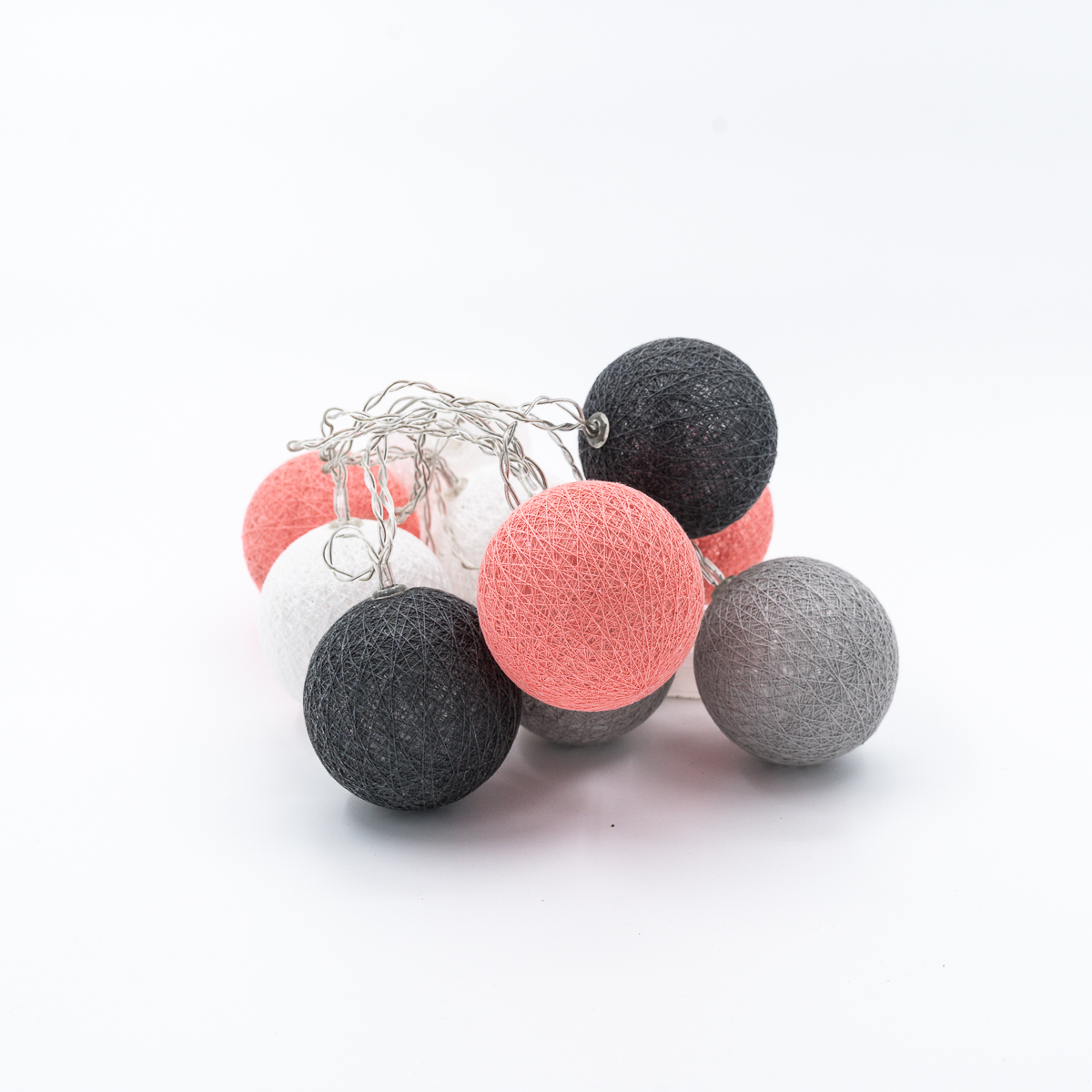 Guirlande led sur piles 10 lampions rose / blanc / gris 6 cm