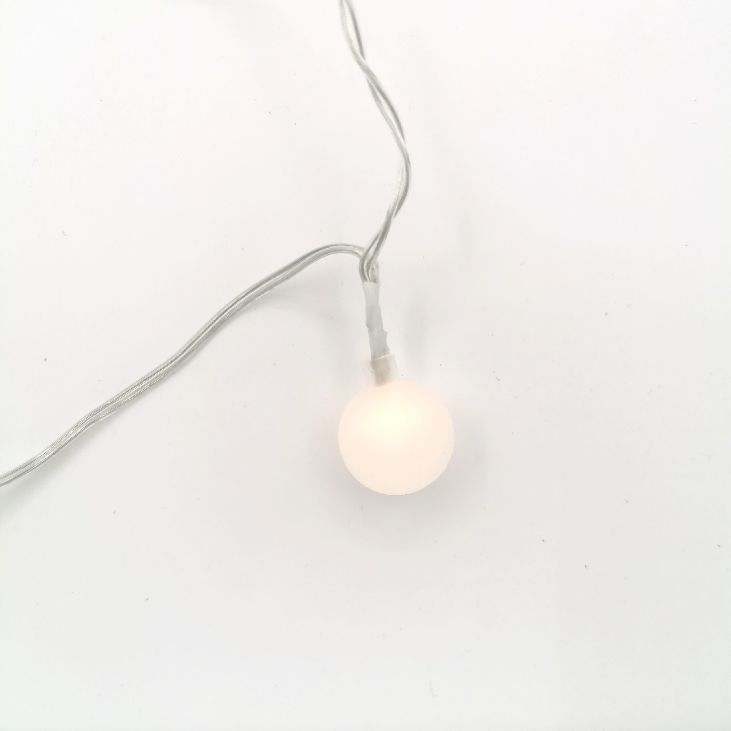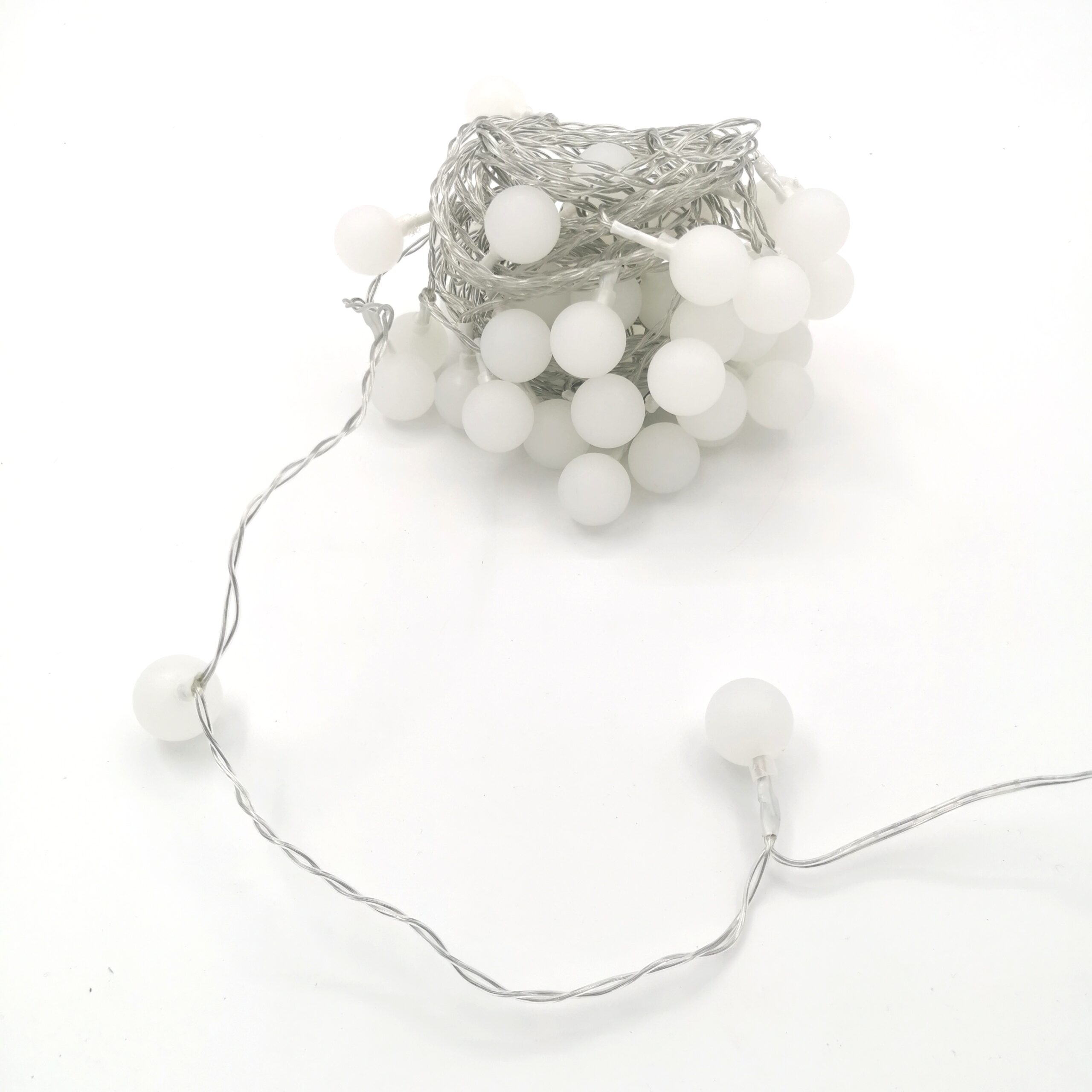 Guirlande sur prise, mini boules blanches 2,5cm - blanc chaud - 50 leds