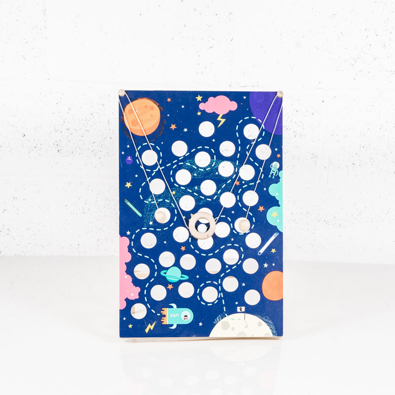 Faites glisser la bille sur le labyrinthe en tirant sur les ficelles.