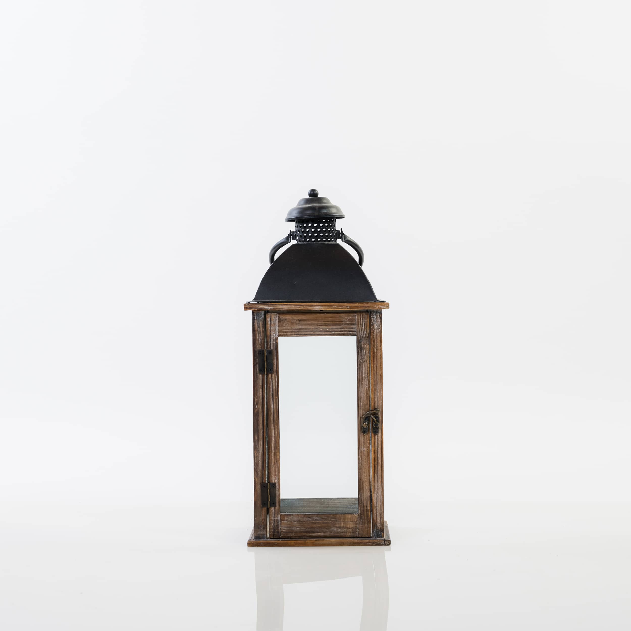 Lanterne en bois et couvercle noir en métal