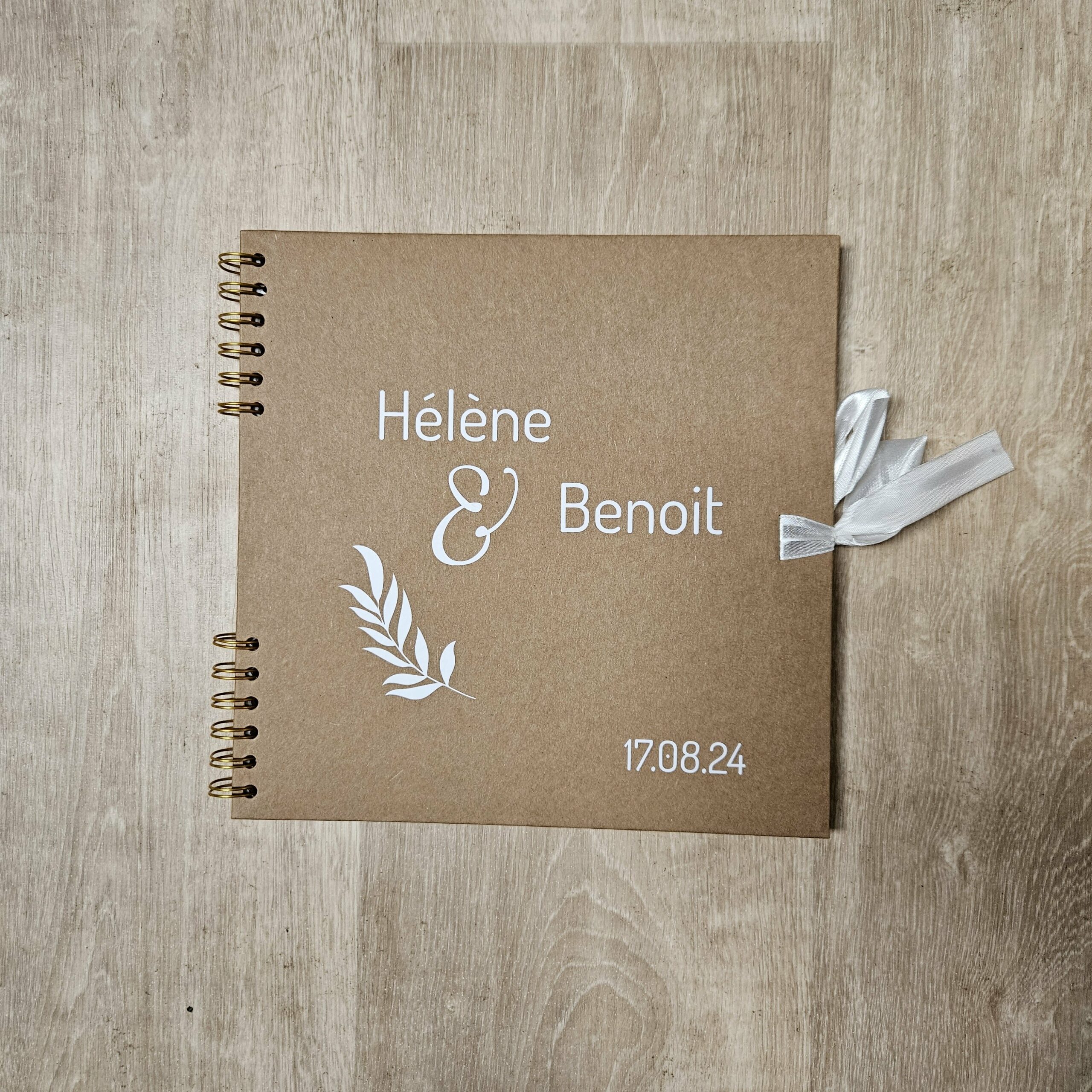 Livre d’or 25*25 cm, extérieur kraft et pages blanches.