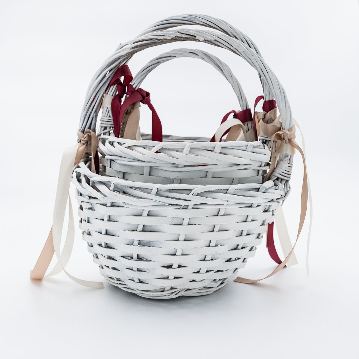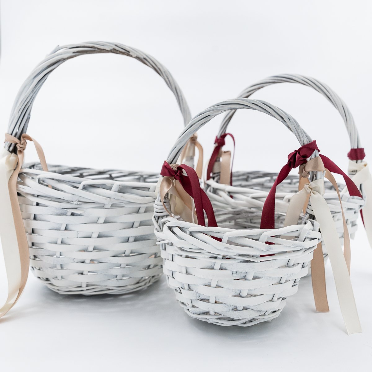 Lot de 3 paniers en osier blanc avec anse et rubans
