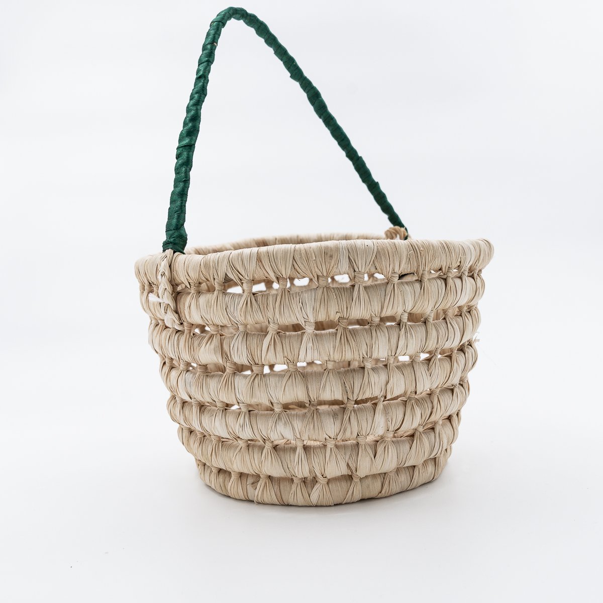 Panier tressé avec anse souple verte