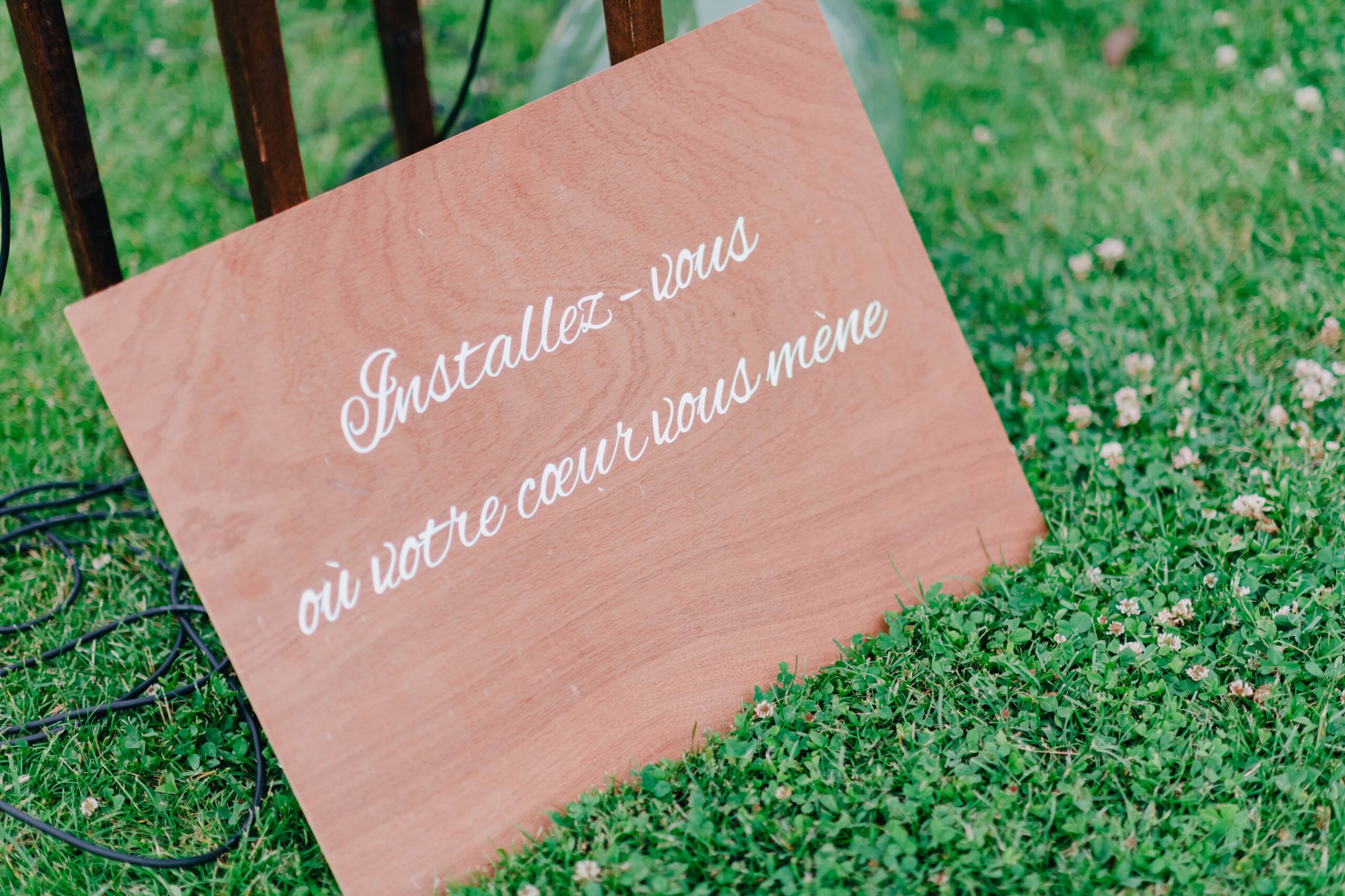 Panneau de cérémonie "installez-vous où votre cœur vous mène"