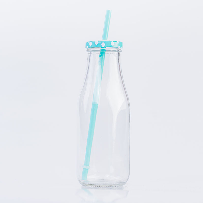 Petite bouteille avec paille, couvercle bleu