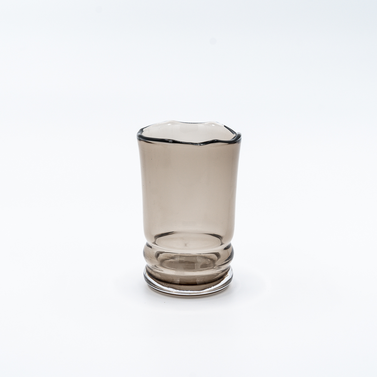 Photophore en verre teinté brun, effet dentelé sur le dessus