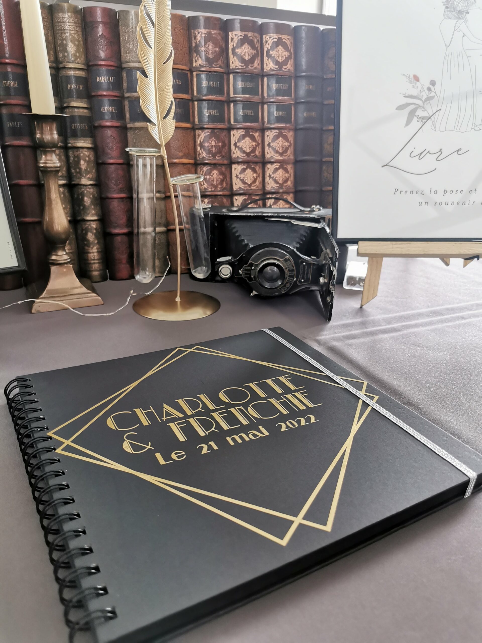 Plume dorée avec 2 fioles