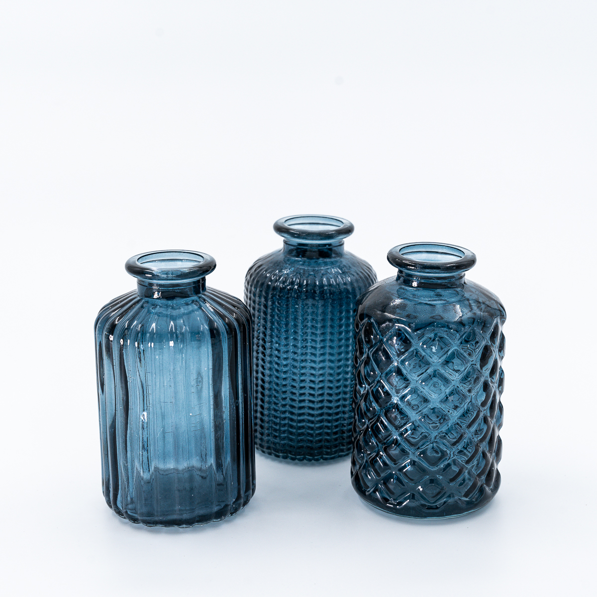 Soliflore bouteille bleu foncé bas, motifs aléatoires