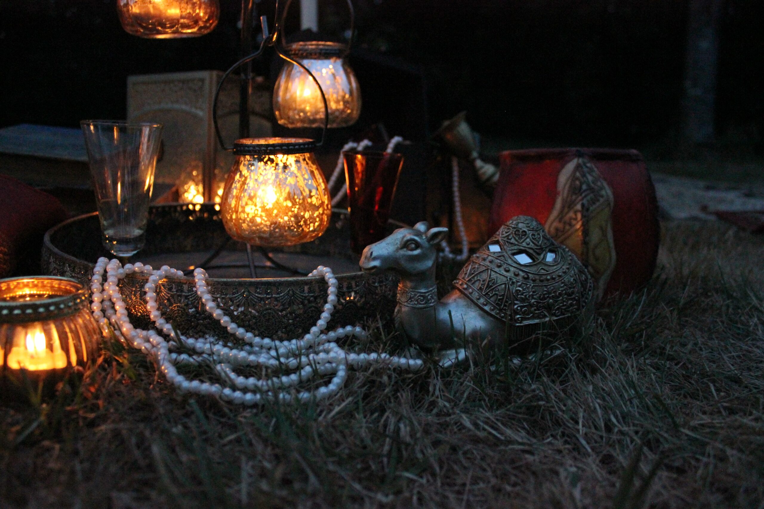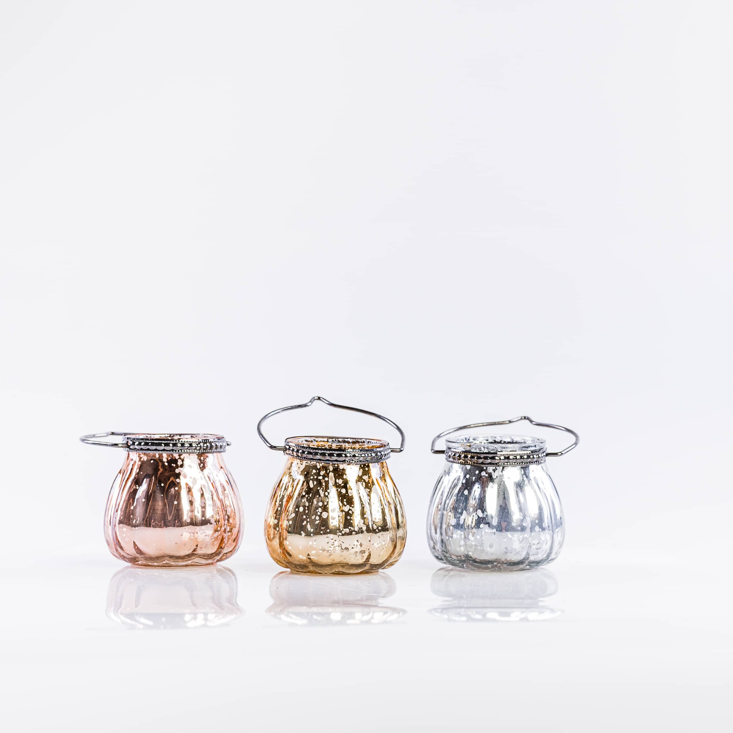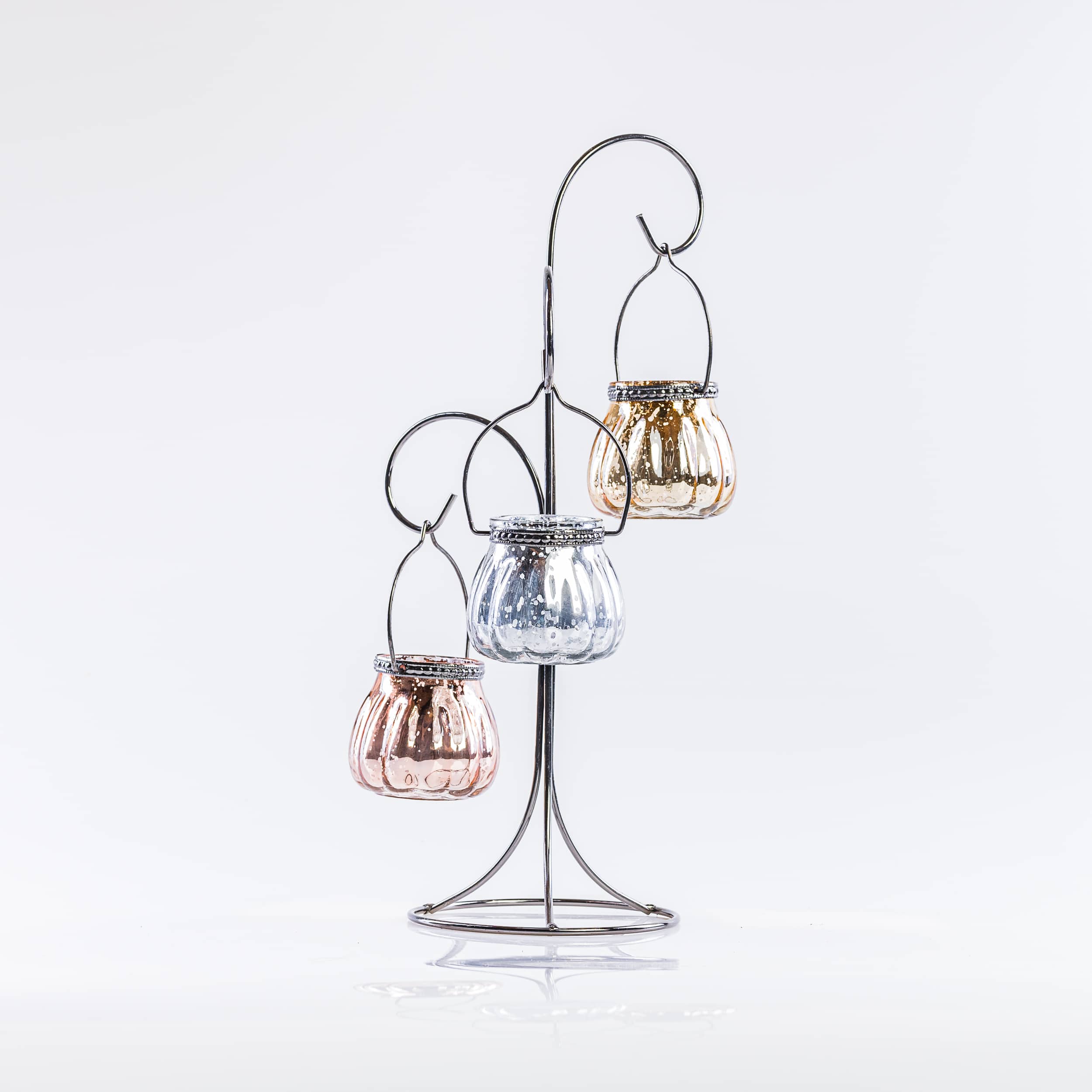 Trio de photophores suspendus, style oriental (photophores doré, argenté et rose gold)
