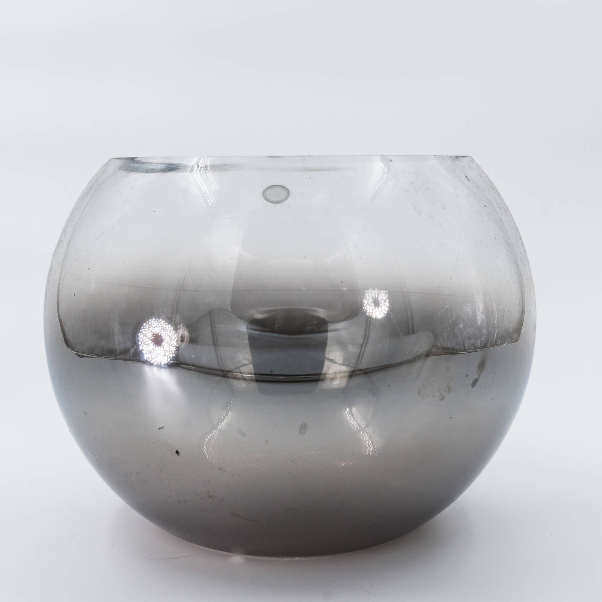 Vase boule verre fumé argenté